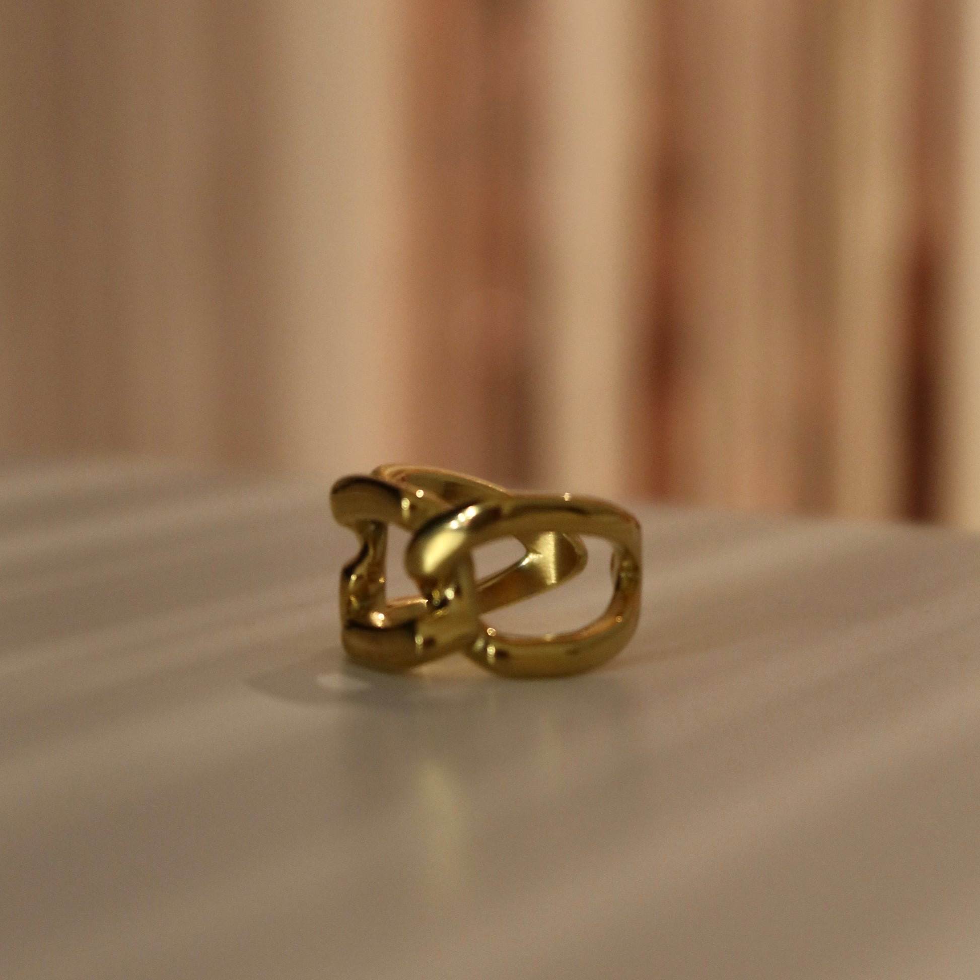 Anello a catena in acciaio dorato regolabile.