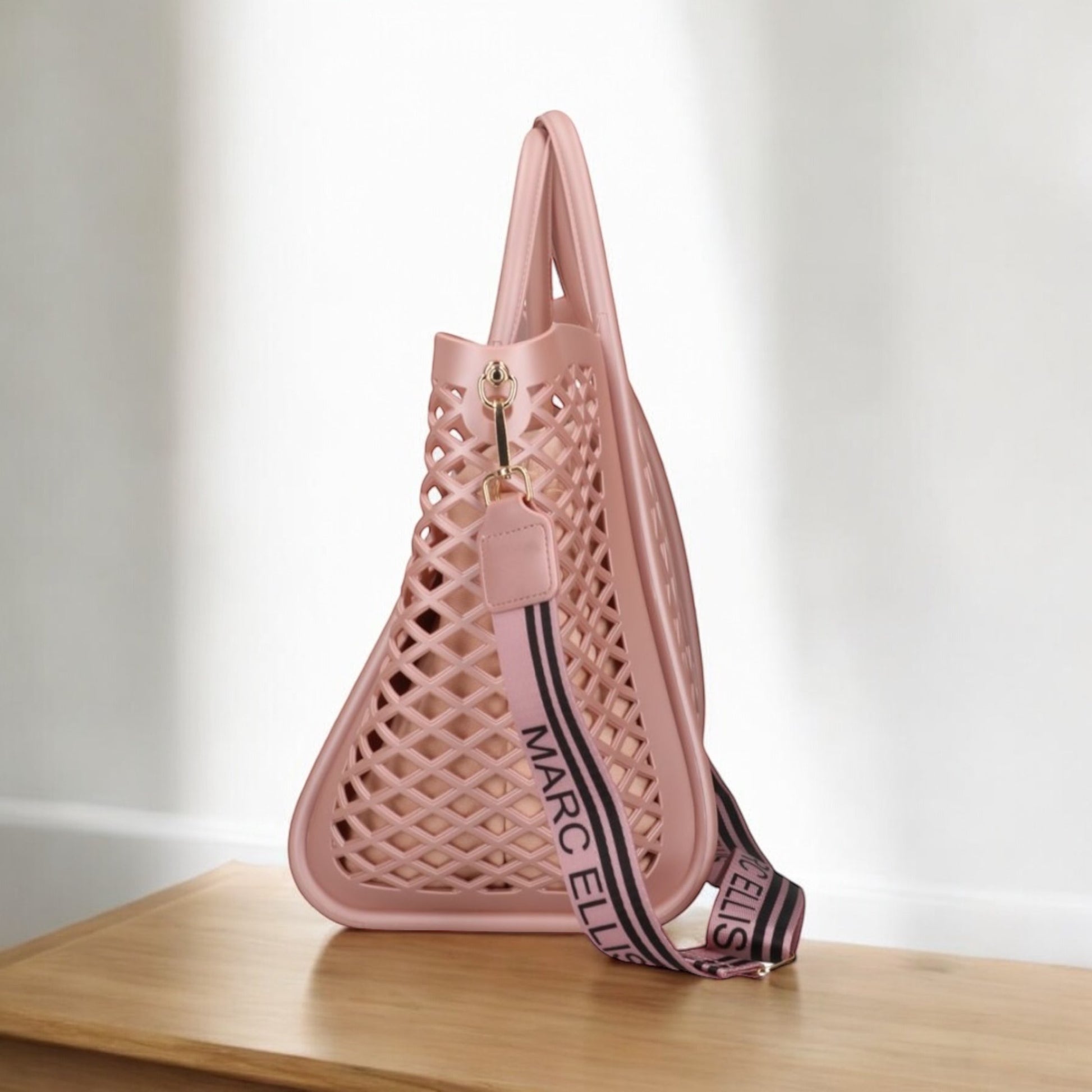 SHOPPER TRAFORATA CON POCHETTE INTERNA E TRACOLLA STACCABILE