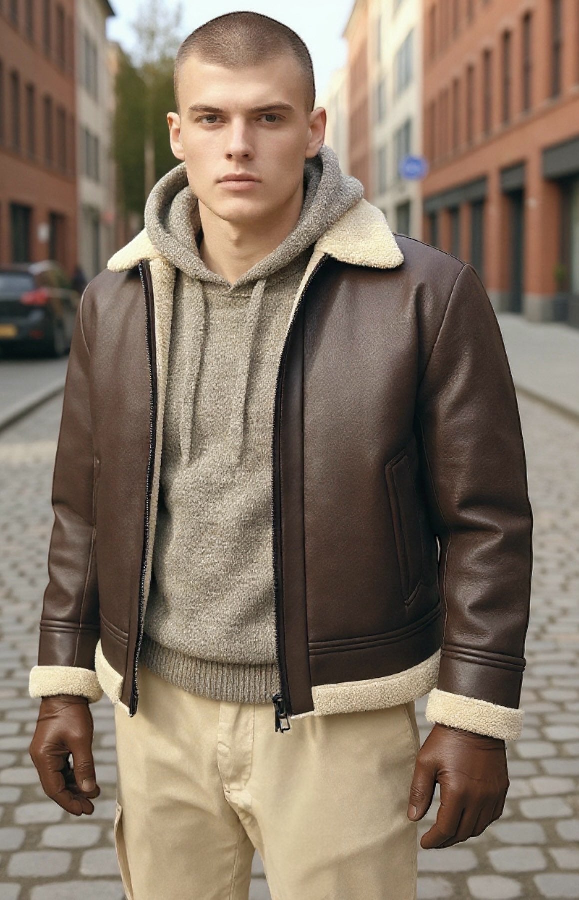 ECOMONTONE CON ORSETTO PANNA, ZIP DI CHIUSURA, 2 TASCHE A FILO.