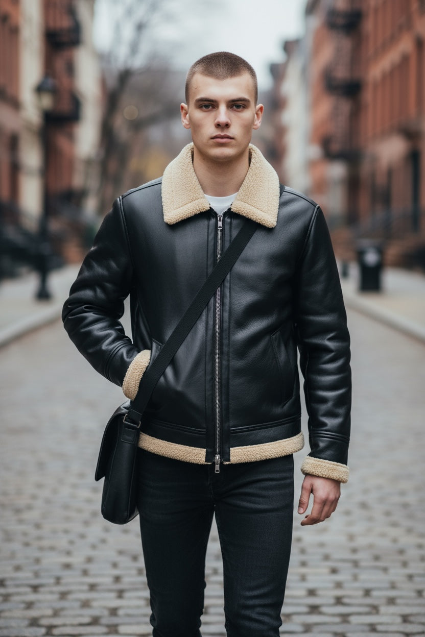 ECOMONTONE CON ORSETTO PANNA, ZIP DI CHIUSURA, 2 TASCHE A FILO.
