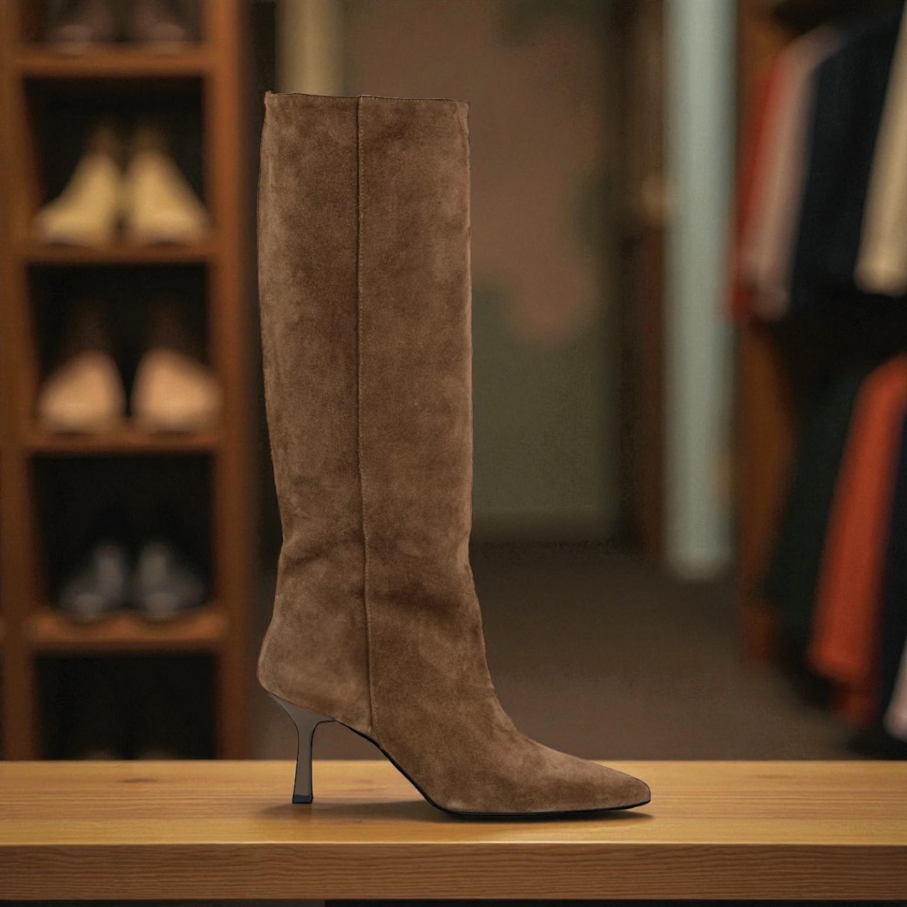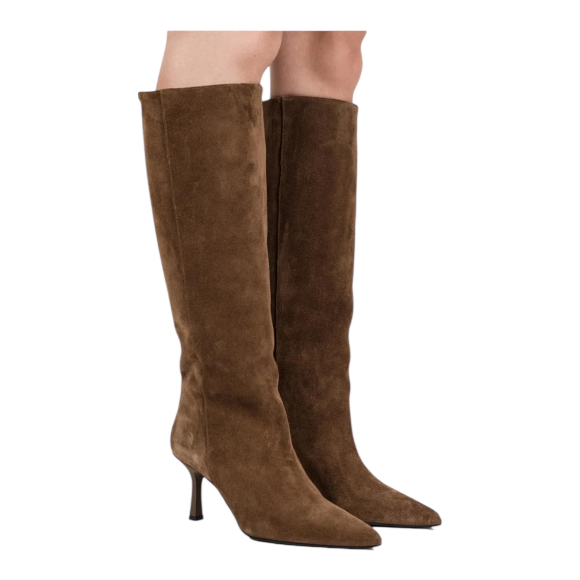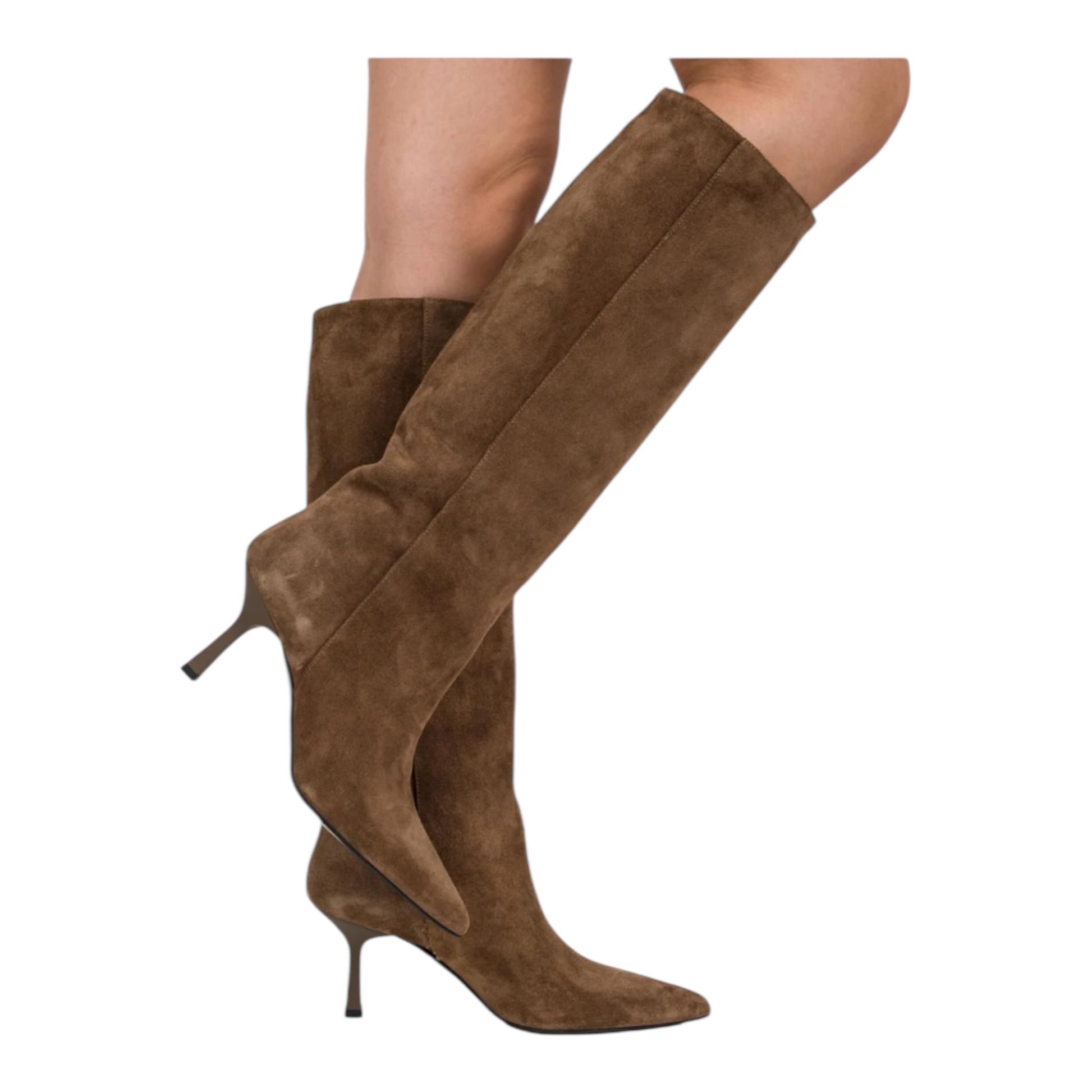 STIVALE A TUBO IN CAMOSCIO MARRONE CON TACCO CIRCA 7 CM.