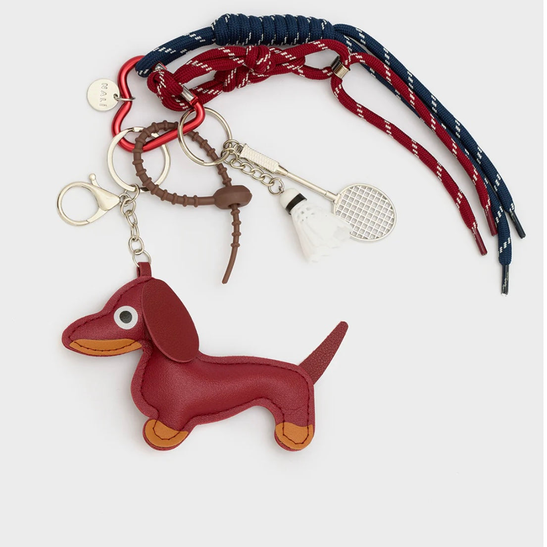 CHARM/PORTACHIAVI A FORMA DI BASSOTTO CON ACCESSORI.