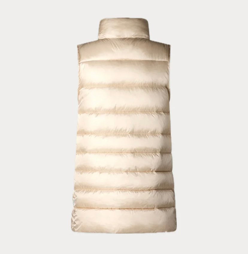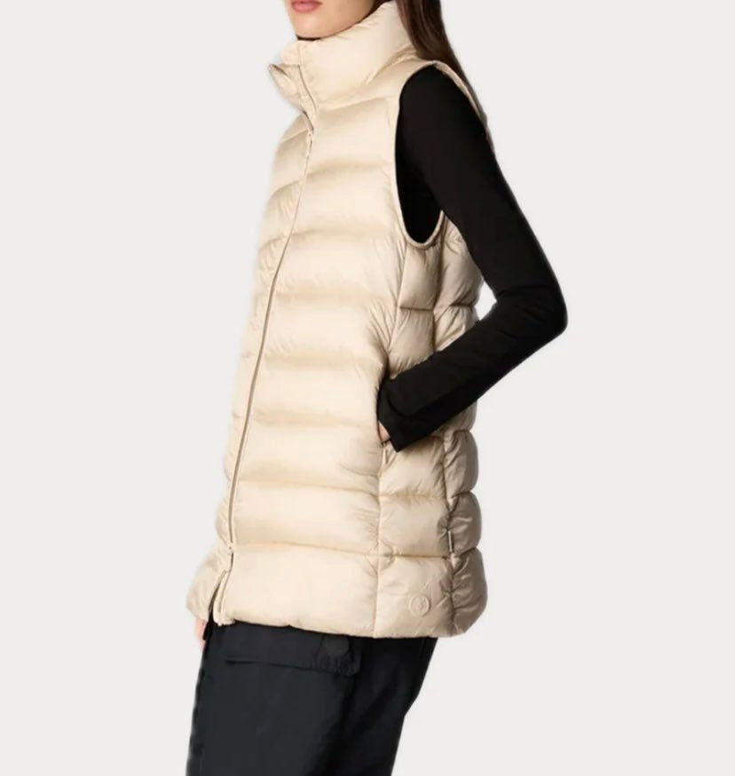 GILET TRAPUNTATO DI MEDIA LUNGHEZZA, ZIP ORO.