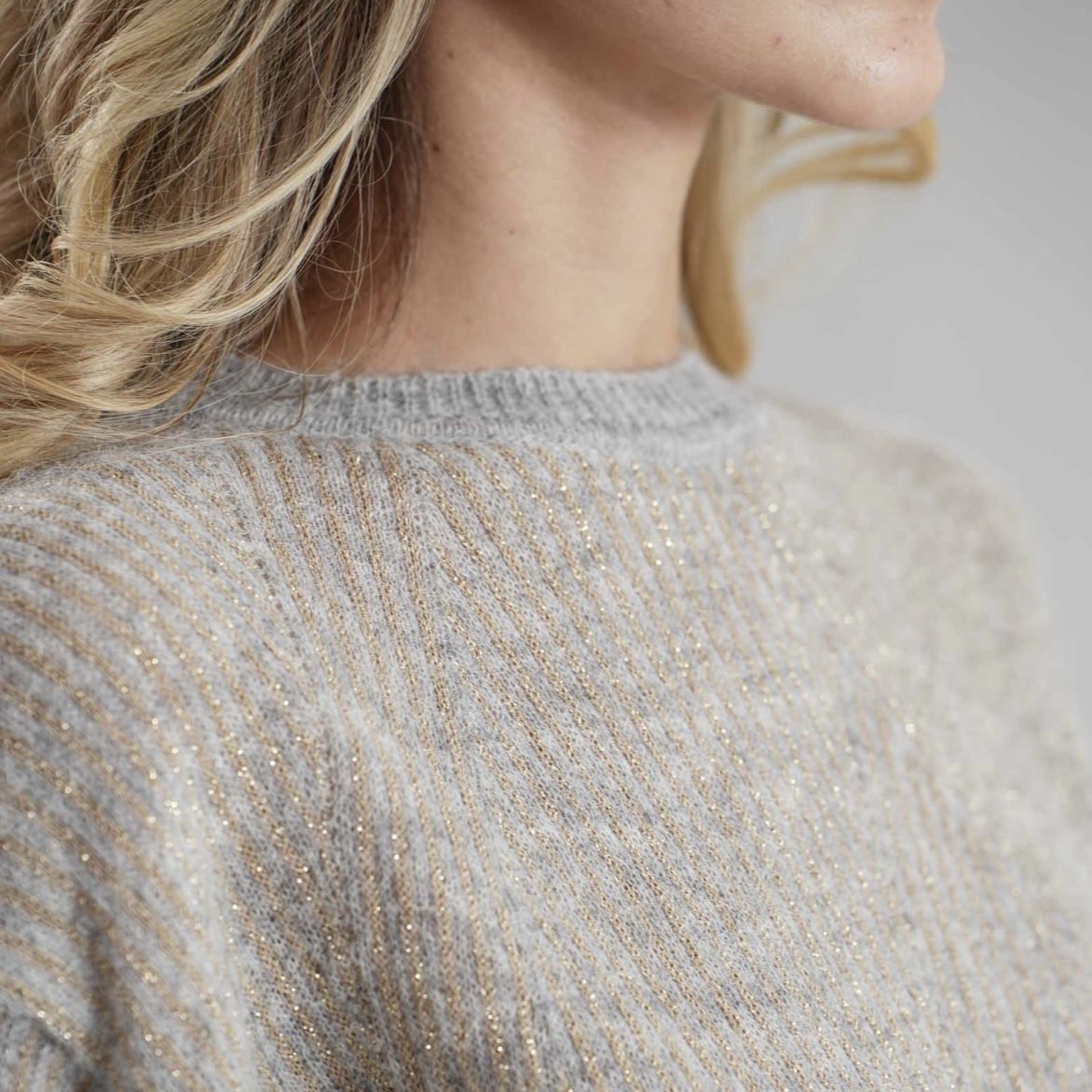 MAGLIA GIROCOLLO IN LANA E LUREX GRIGIO E ORO